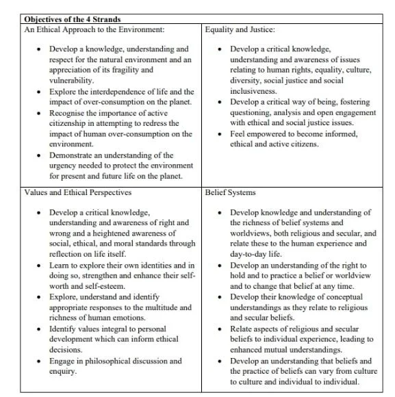 The Learn Together Ethical Education curriculum is very much integrated with the Social, Personal, and Health Education curriculum. This programme is taught by teachers to embed the ethos of our school. Our ethos reflects the four guiding principles of all multi-denominational schools as defined in the Educate Together Charter.
