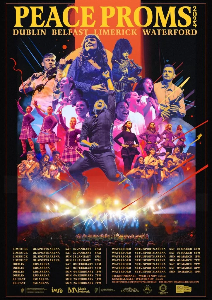 Every February, the Cross Border Orchestra of Ireland performs a concert, Peace Proms, at the Simmonscourt Arena RDS in Dublin with a 3,000-strong children’s choir.